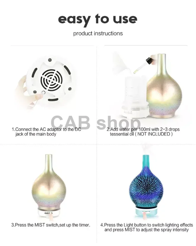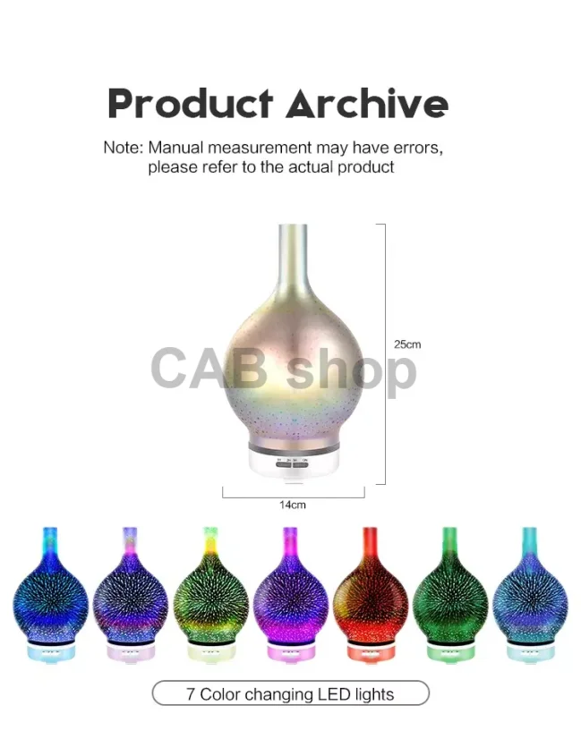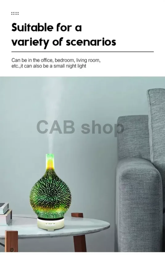 1. 3D : Tento aromaterapeutický difuzér je nielen praktický, ale má aj elegantný dizajn. Difúzor máveľmi zaujímavý 3D tvar. Je obzvlášť vhodný na zdobenie obývacej izby, spálne, kancelárie, hotela atď.