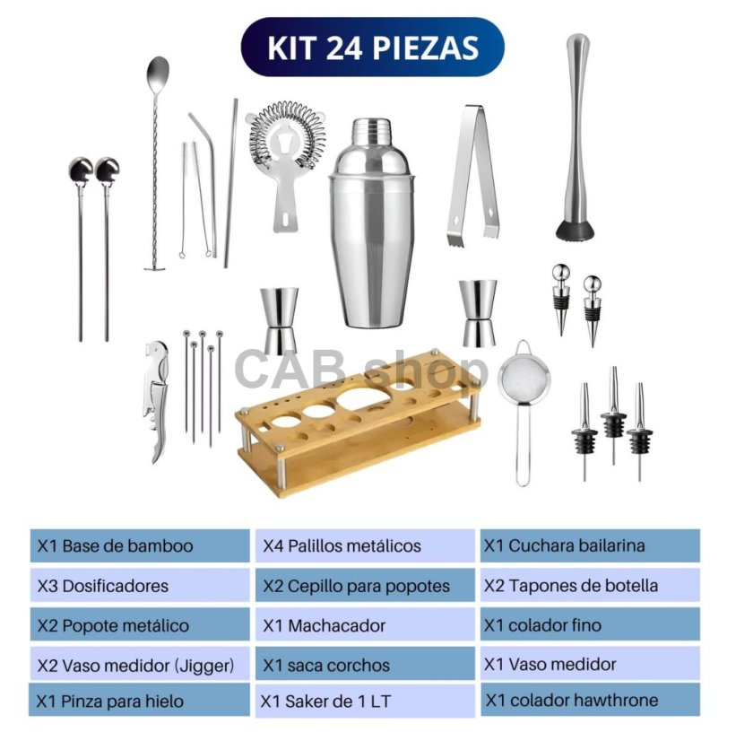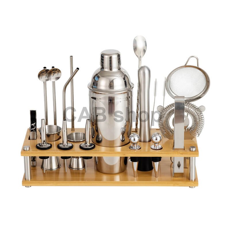 Predstavte si, že vstúpite do sveta mixológie s istotou a eleganciou, ktorú prináša len tá najlepšia barmanská výbava. Naša 24-dielna barmanská súprava nie je len nástroj, ale kľúč k odomknutiu nových úrovní kreativity a precíznosti v miešaní koktejlov. Nechajte sa uniesť do sveta, kde každý koktejl rozpráva príbeh a každý dúšok je umelecké dielo.