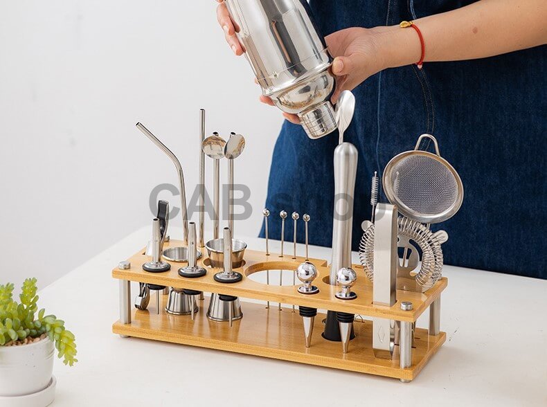 3. Estetika a funkčnosť: Bambusový stojan nielenže krásne vystaví všetky nástroje vo vašej kuchyni alebo bare, ale tiež udržiava vašu súpravu organizovanú a pripravenú k použitiu.