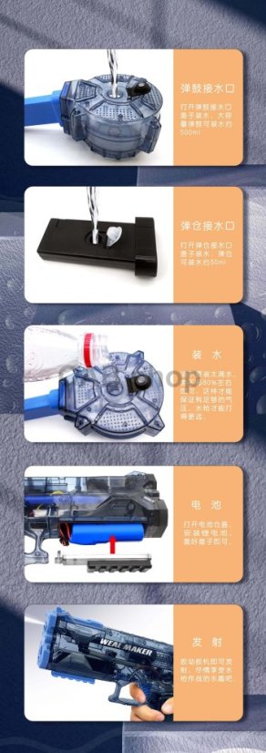 Predstavujeme vám revolučnú Elektrickú Vodnú Pištoľ WEAL MAKER – dokonalý nástroj na maximálnu zábavu vonku aj vo vnútri. S touto vodnou pištoľou zažijete doslova vodnú explóziu, ktorá premení bežný deň na nezabudnuteľné dobrodružstvo.