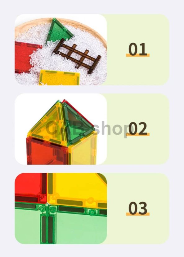 2. Jednoduché použitie: Magnetické dieliky sa ľahko spájajú a rozdeľujú, čo umožňuje jednoduché a rýchle stavanie aj tým najmenším. Deti sa naučia základy geometrie a priestorového myslenia bez námahy.