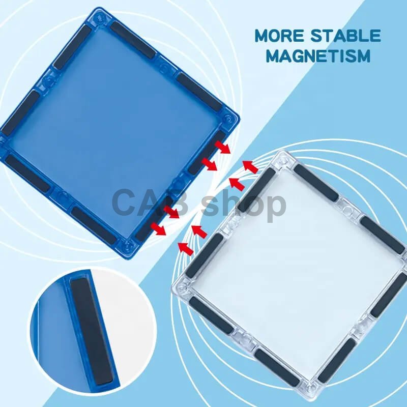 4. Jednoduché a intuitívne použitie: Magnety vo vnútri dlaždíc sú dostatočne silné, aby udržali rôzne konštrukcie pohromade, no zároveň sú dostatočne ľahké na to, aby ich deti mohli jednoducho manipulovať. Stačí len priložiť k sebe a dlaždice sa automaticky spoja.