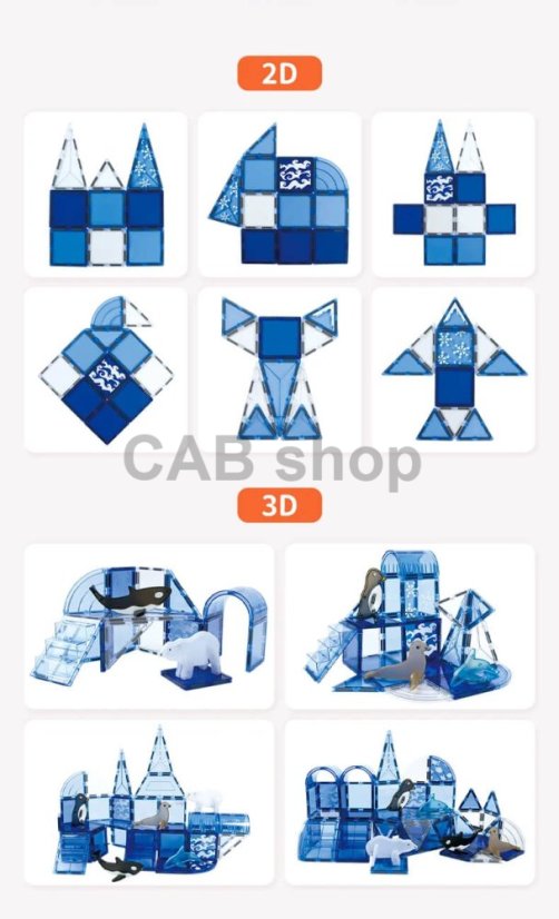 | Kombinovateľnosť | Magnetic Tiles, Magnetic Tiles XINBIDA, Magnetic Building Tiles, a iné väčšina magnetických stavebníc, Ľahko kombinovateľné |