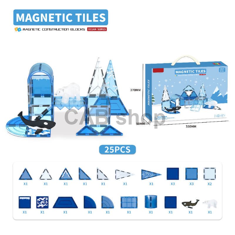 Magnetická stavebnica Ocean sada 25ks - Magnetic Tiles